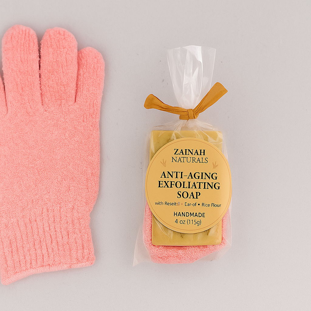🧼 Exfoliating Soap – Gently polishes away dead skin cells, unclogs pores, and refines texture while infusing your skin with collagen and natural botanicals.