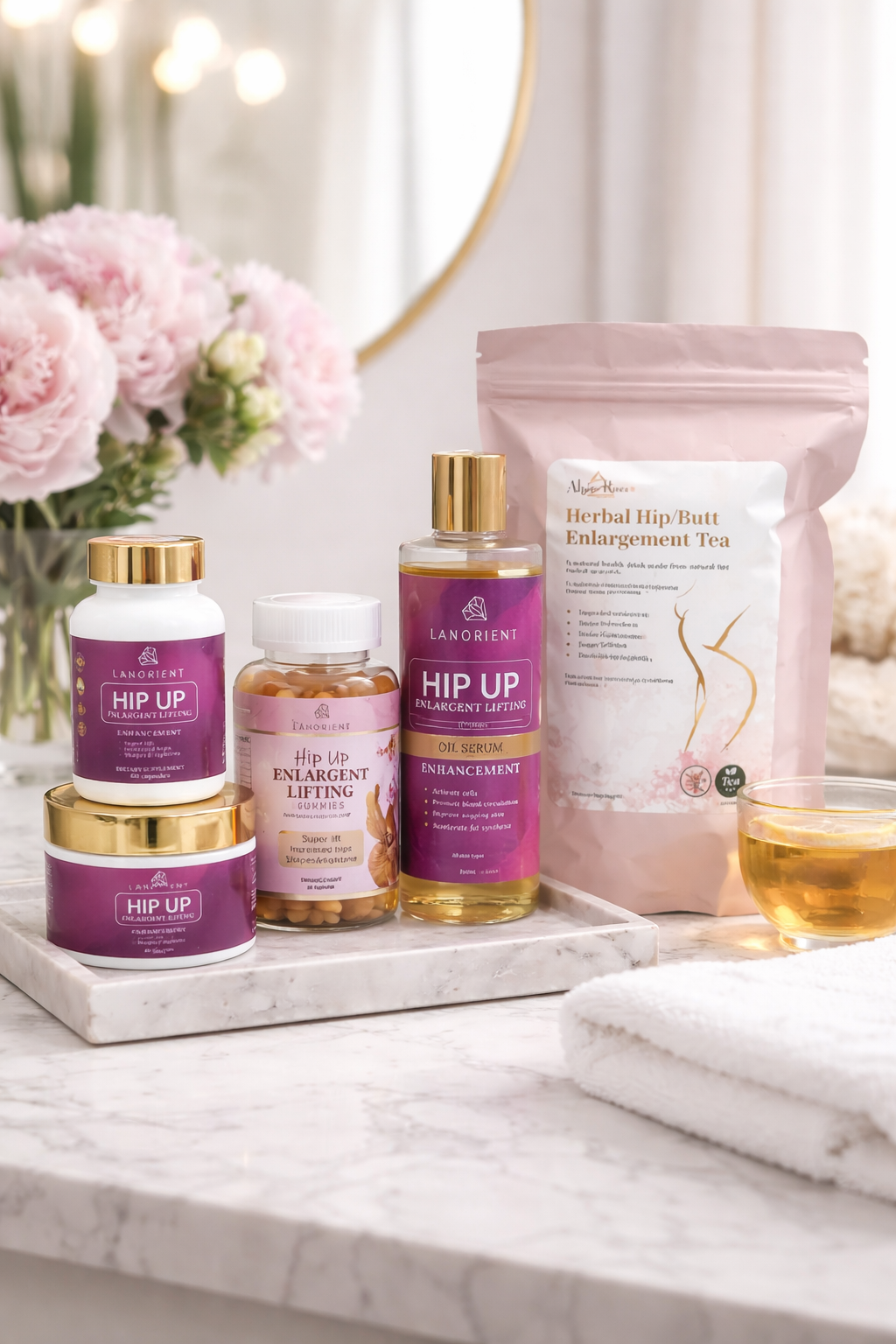 Our Booty & Hip Enlargement Formula is specially designed to support a fuller, rounder, and more lifted appearance by nourishing the body with carefully selected natural ingredients. This formula helps promote healthy fat distribution while supporting firmness, smoothness, and overall skin elasticity.