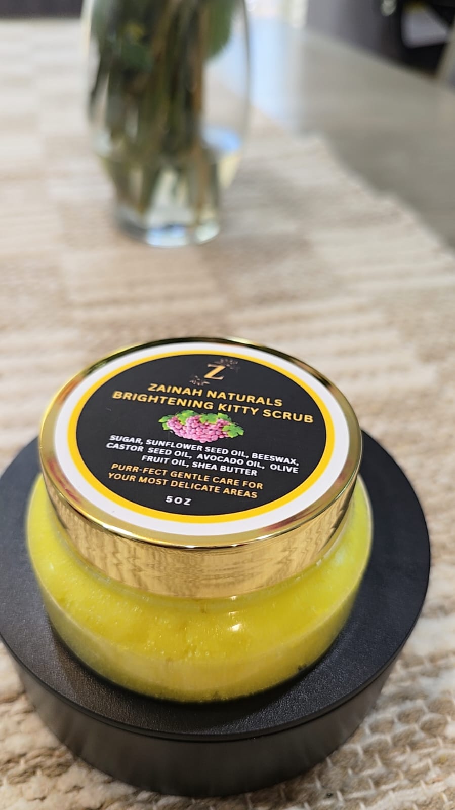 1. Kitty Scrub: Exfoliates and smooths skin, removing dead cells.
